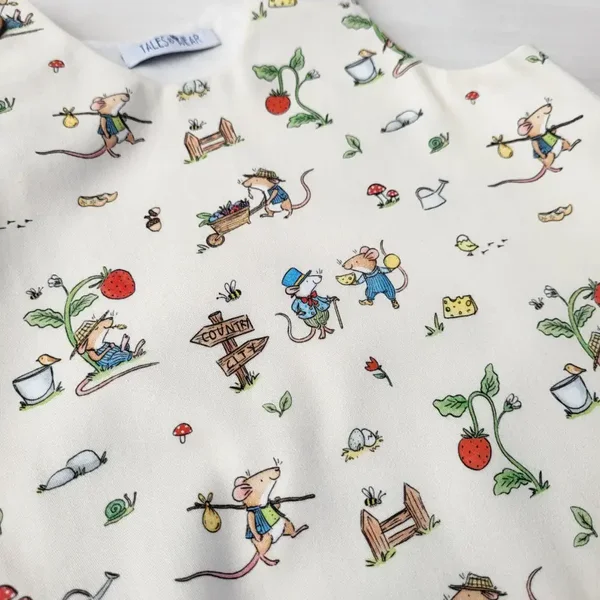 Do you remember the fable of The Country Mouse and The City Mouse? It used to be one of my favorites when I was little and I remember every little detail of it. The Country Mouse of my youth was quite malnourished and didn't look healthy to be honest, but I definitely can't say the same about the sweet country mice of this collection. Growing up I came across different versions of this story, all equally adorable and each with its unique traits. The colorful illustrations on these lovely ASLAN rompers were made exclusively for my shop by the talented Anastasia Wessex. Look at all those adorable hardworking and/or chilling mice! They just want to make you join them and enjoy the country life. This romper comes in 4 different colors, each one showcasing a different color and characters combination. This listing in particular is for the light NEUTRAL/CREAM one.