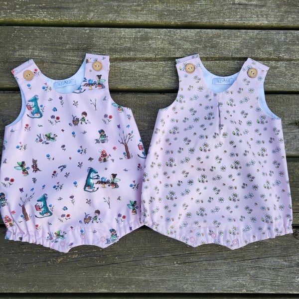 This garment is made from 100% medium weight cotton and is lined with a white layer of extremely light and soft cotton which hides all seams and make it a dream to wear even for new borns. It's the perfect item for warmer Spring and Summer days. The design is simple and sweet and the front pleat for a happy touch.