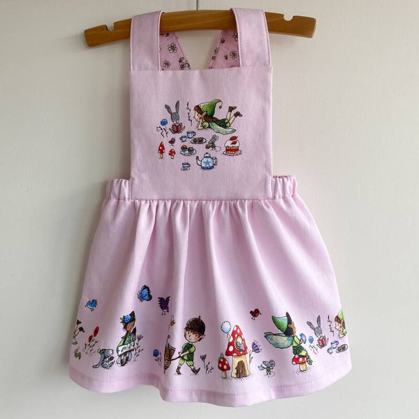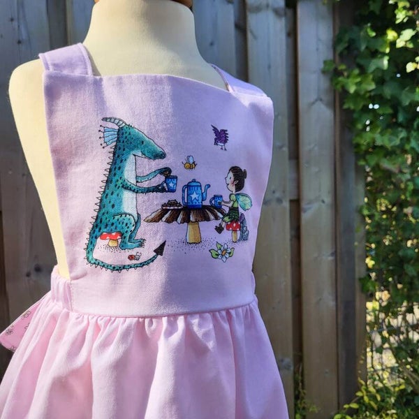 Handmade pink pinafore cotton dress from the Magical Tea Time collection.