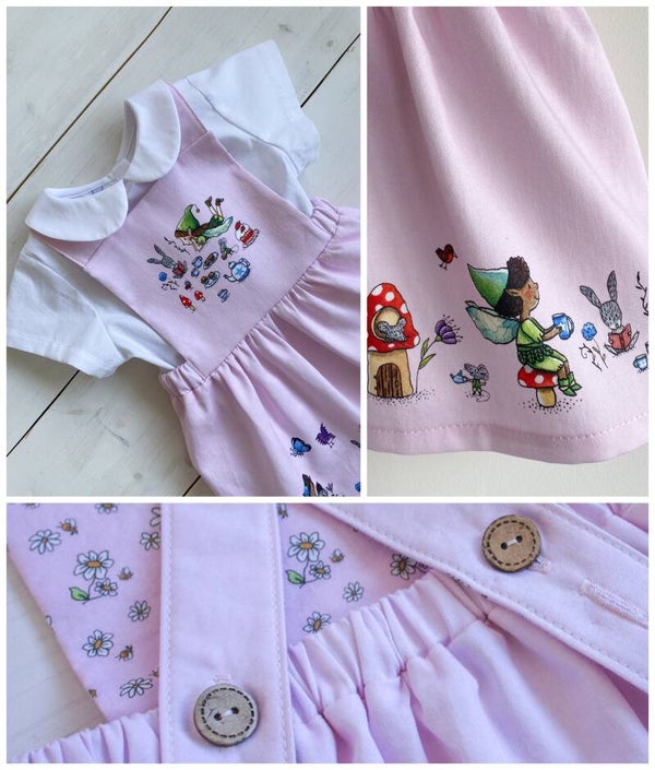 The POLLY pinafore is the perfect addition to your little one's wardrobe. Have fun making up stories with all the beautiful characters in it. Your girl will love it!